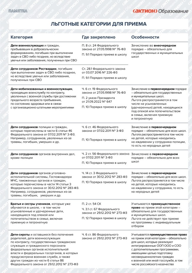 - копии документов, подтверждающих право внеочередного, первоочередного приема на обучение по основным общеобразовательным программам или преимущественного приема на обучение по образовательным программам основного общего и среднего общего образования, интегрированным с дополнительными общеразвивающими программами, имеющими целью подготовку несовершеннолетних граждан к военной или иной государственной службе, в том числе к государственной службе российского казачества;